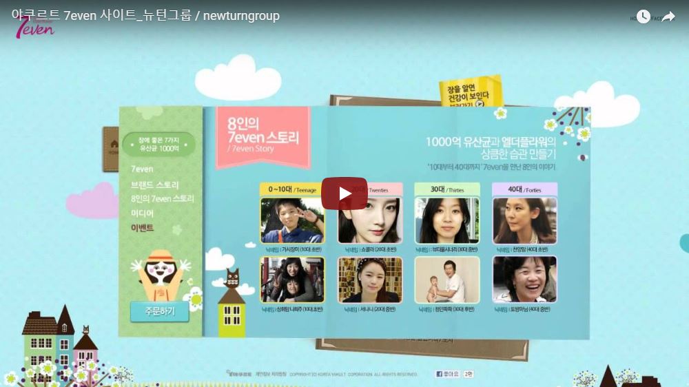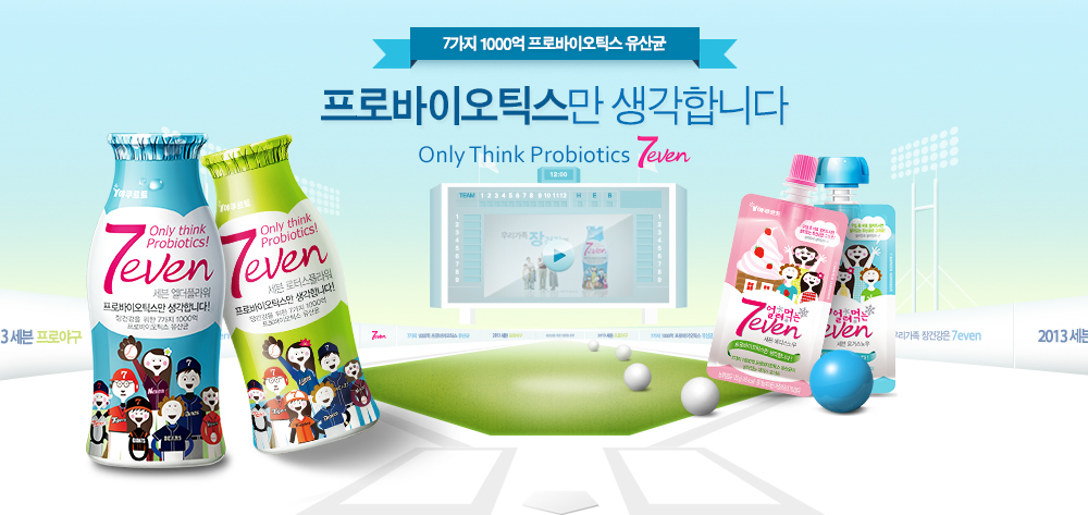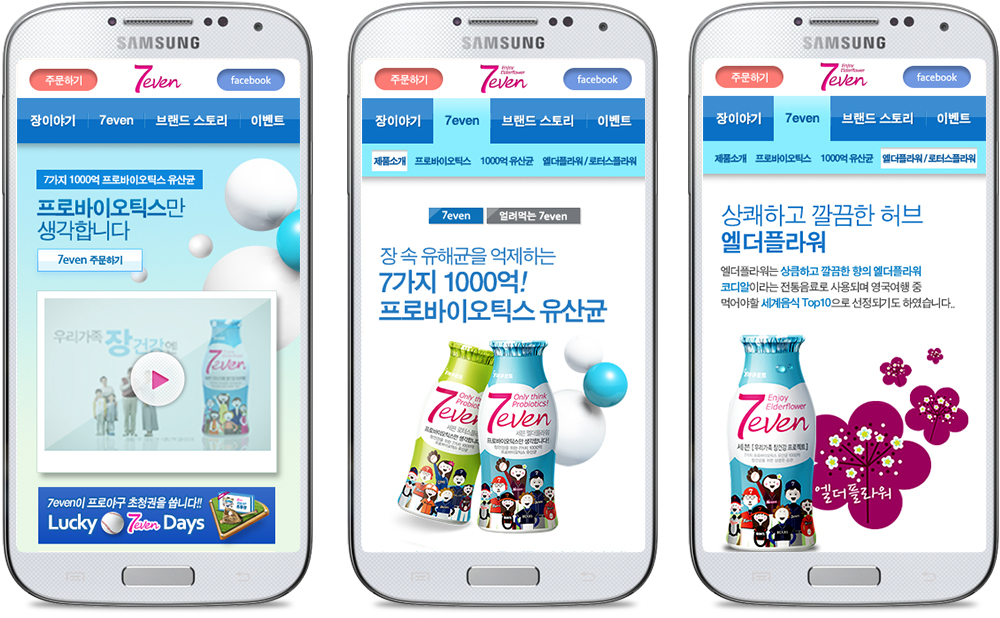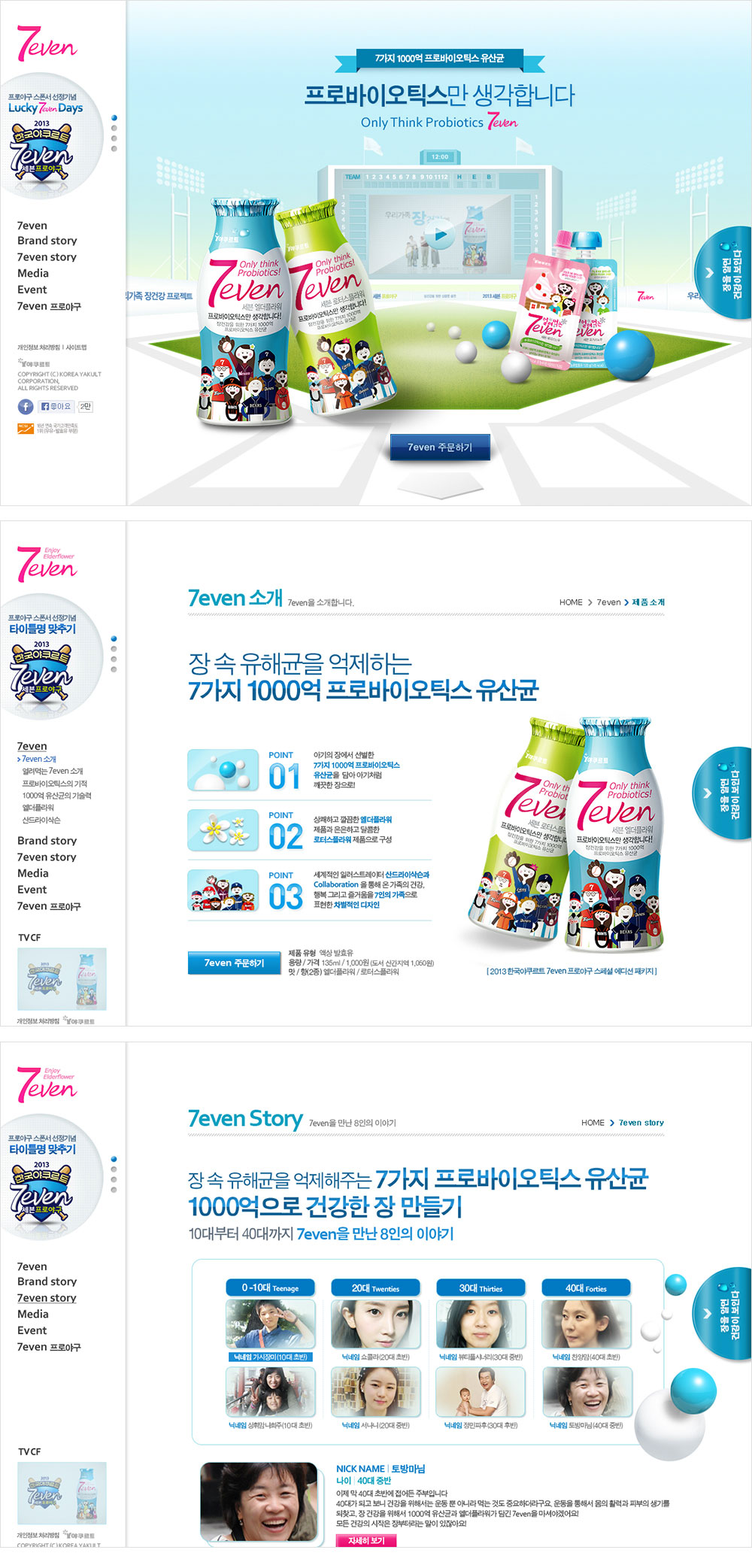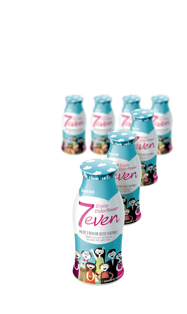 한국야쿠르트에서 에이스와 야쿠르트400 이후 액상발효유로는 12년 만에 보인 신제품인 7even의 런칭 온라인 프로모션을 진행했습니다. 영국의 세계적인 팝 일러스트레이터인 산드라이삭슨과 콜라보레이션한 7even의 패키지 이미지를 더욱 살리기 위해 팝아트적인 디자인과 페이지 구성을 계획하고 진행했습니다.