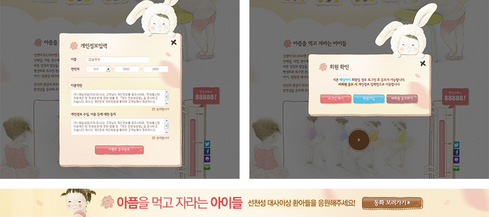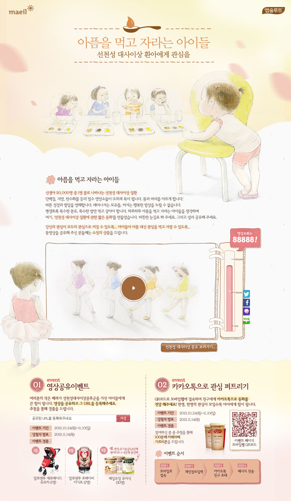 아이들과 함께 어울려 음식을 먹을 수 없는 환아들을 이해하고 따뜻한 관심에 대한 호소를 영상공유이벤트에 녹여야 했습니다.