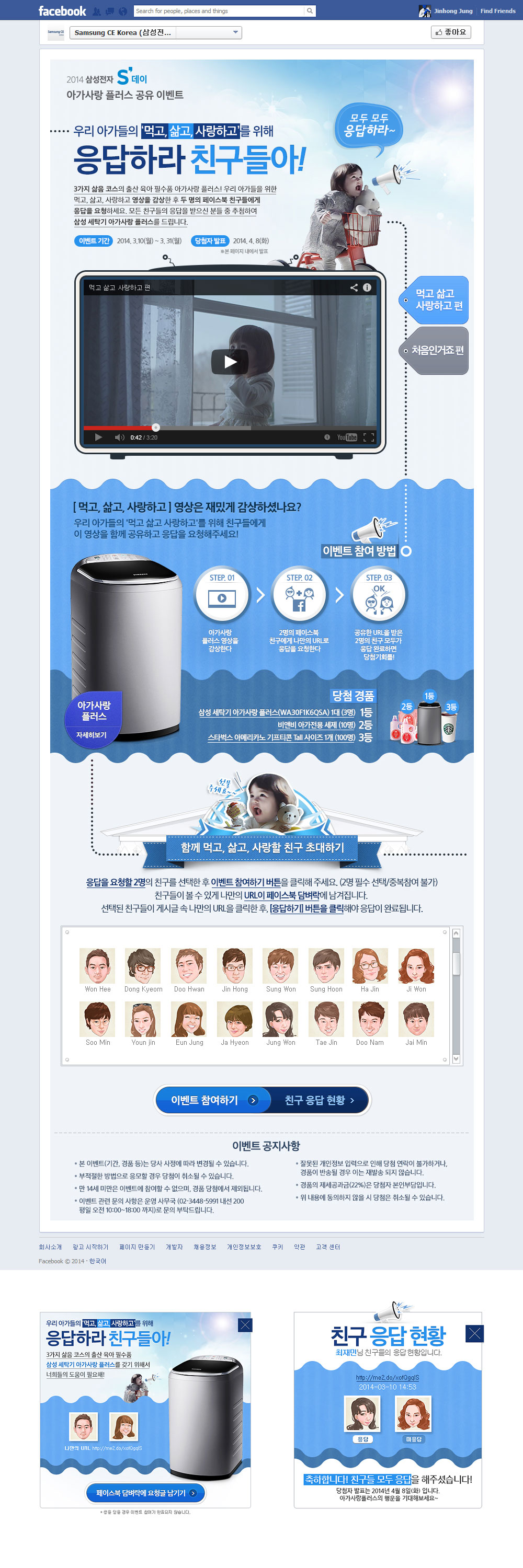 삼성세탁기 아가사랑플러스 페이스북 이벤트 (WEB)