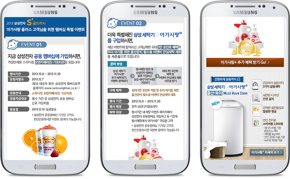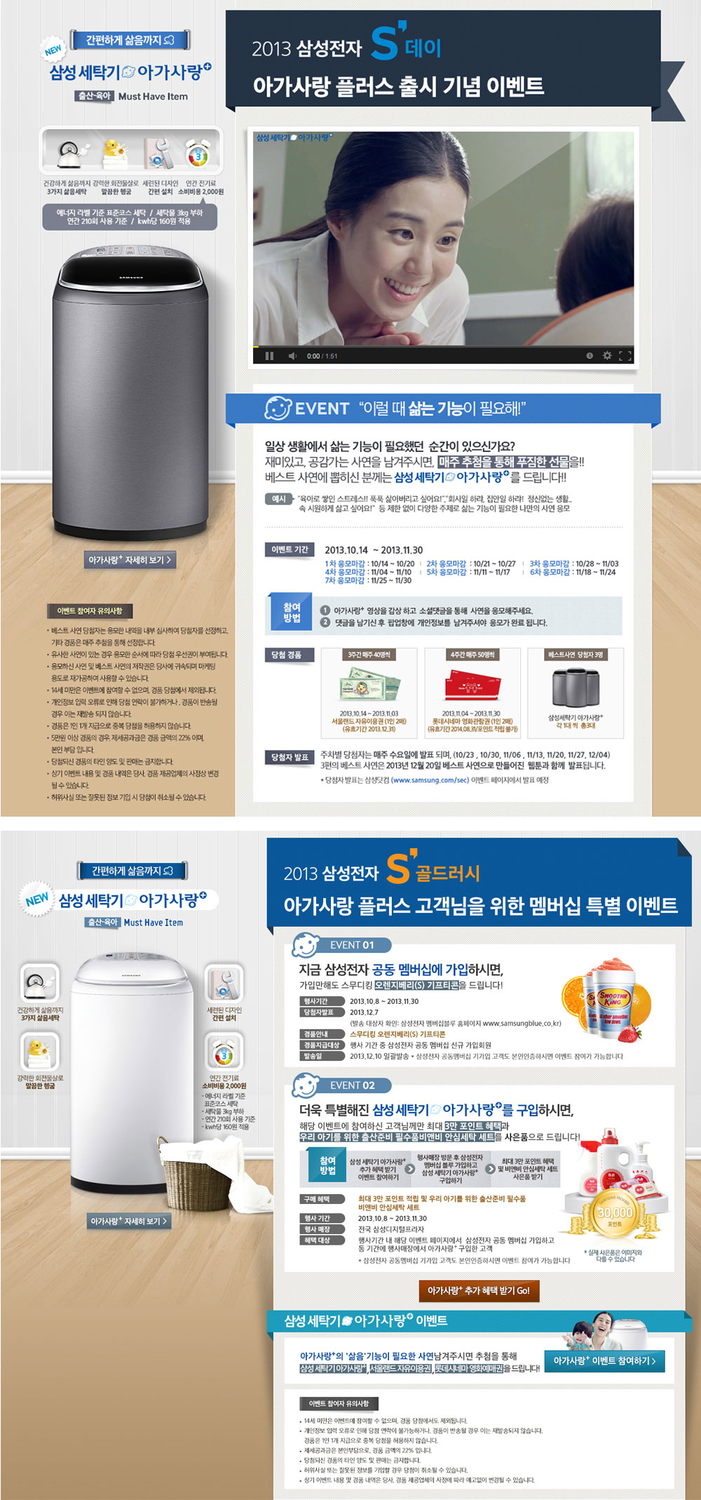 삼성전자의 세탁기 아가사랑과 아가사랑플러스 런칭 온라인 캠페인입니다.