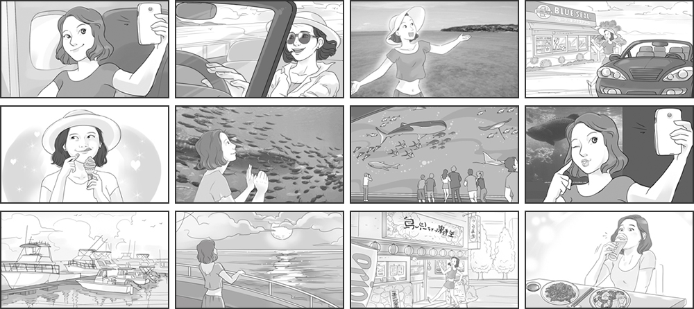 오키나와 홍보 프로젝트로, 한국에서는 국내 젊은 층의 접근성이 좋은 영상으로 결정했습니다. 광고주가 요청했던 한국의 셀러브리티는