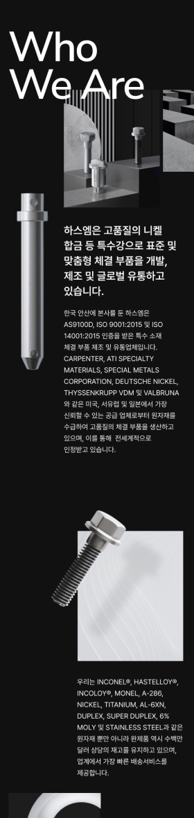 하스엠은 하스텔로이, 니켈합금 등 특수강을 소재로