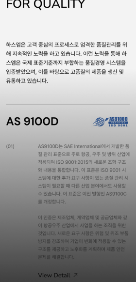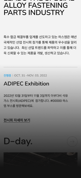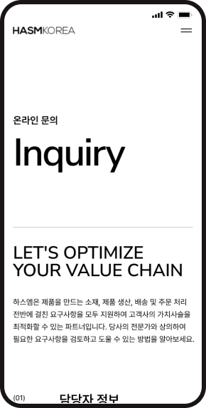 | 우리는 하스엠의 글로벌 웹사이트를 제작하면서 직관적이고 심플한 디자인을 통해 신뢰성을 강화하는 데 주력했습니다. 사용자 경험을 최우선으로 하여 필요한 정보를 빠르게 찾을 수 있는 깔끔한 인터페이스를 제공했으며, 이와 동시에 불필요한 요소를 최소화하고 생생한 영상 및 시각적 콘텐츠를 활용해 하스엠의 생산설비와 제품 사용 분야를 효과적으로 전달했습니다. | |