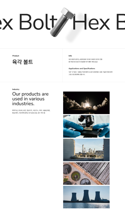 볼트, 너트 등의 다양한 체결 부품을 생산하고 있습니다.