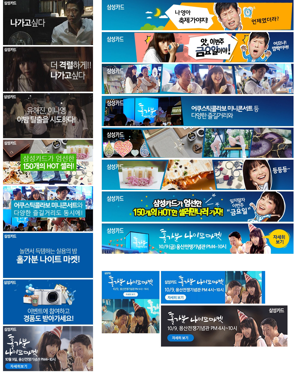삼성카드의 '홀가분 나이트마켓' 캠페인의 배너작업입니다. 10월 9일에 열리는 본 행사 참여를 유도하기 위해