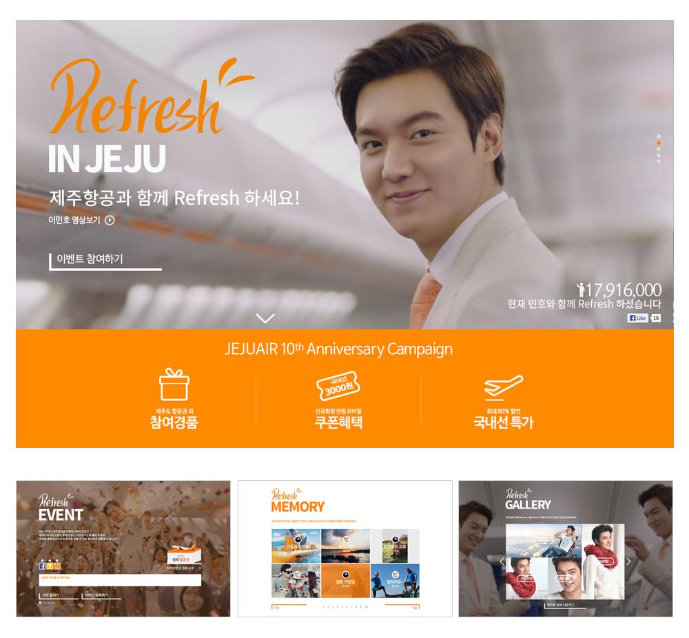 Refresh in JEJU AIR 의 그 첫 번째로 “Refresh In JEJU” 라는 타이틀 아래 이민호를 활용한 즐거움이 가득한 제주항공을 어필하는 “Refresh 영상”을
