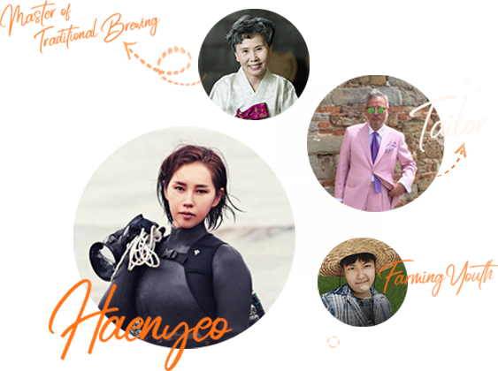 해녀, 쉐프, 재단사, 청년농부, 전통주 장인, 요리연구가, 인디가수,