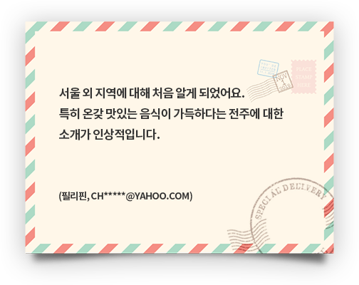 경기/충청, 경상, 전라, 강원, 제주 등 6개 지역에서 거주 중인 한국인 친구