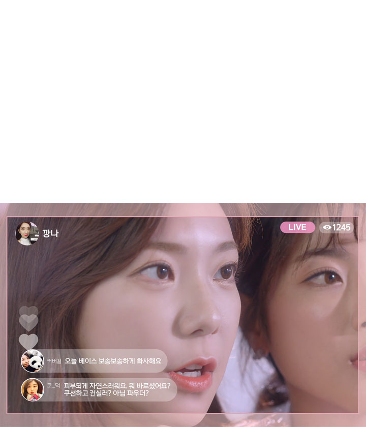 마몽드 브라이트닝 커버 파우더 쿠션 영상을 위해 뷰튜버 깡나와 새벽이 만나