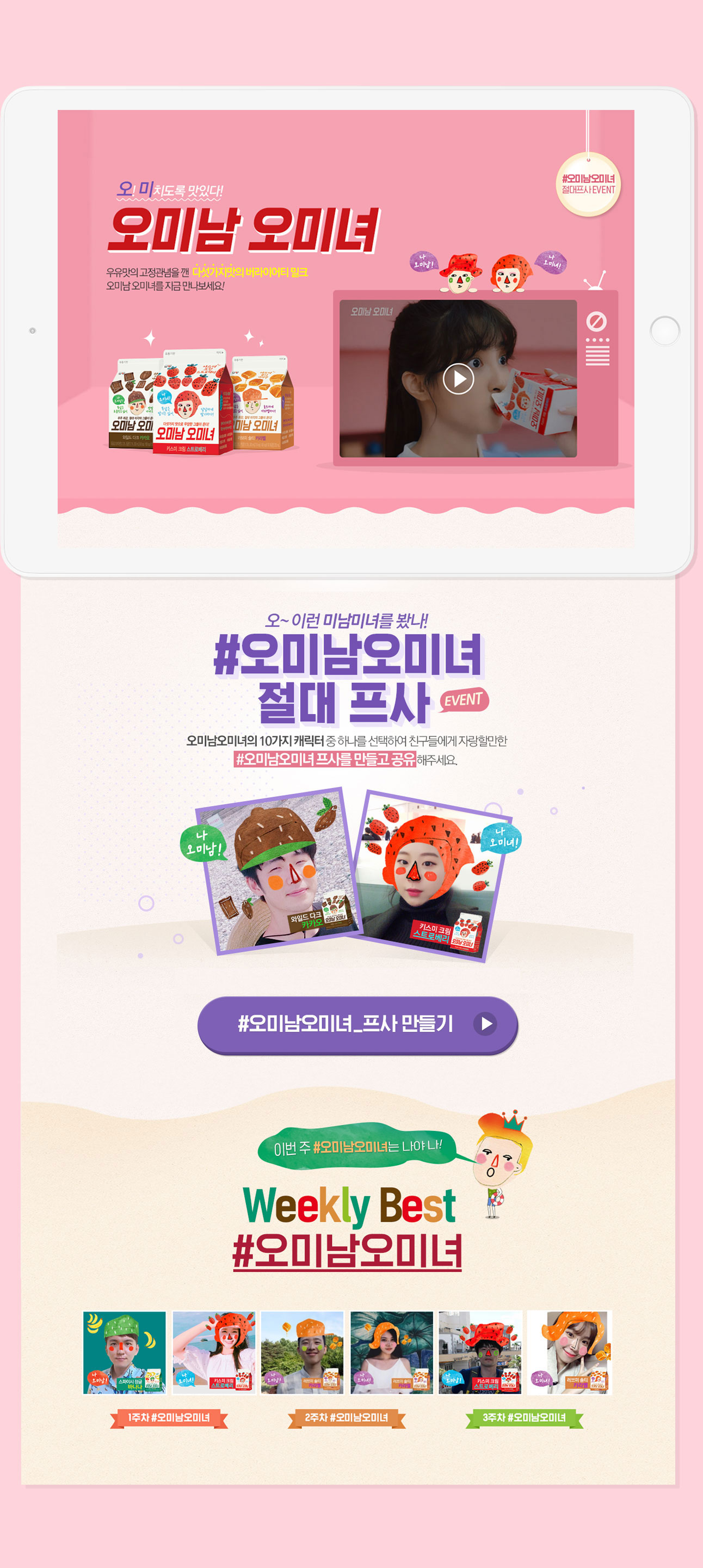 또한 참여 콘텐츠들 중 매주 ‘금주의 오미남오미녀를’ 선정해 약 4주간의 캠페인을 꾸준히 이어나갈 수 있도록 하였습니다.