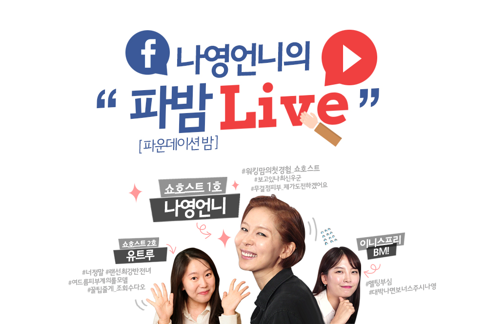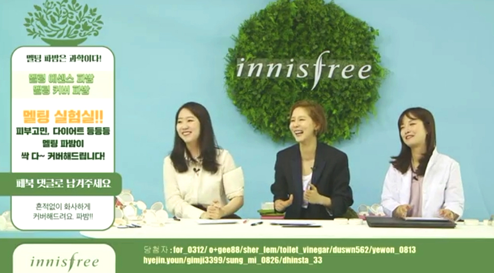 이니스프리가 새롭게 런칭한 멜팅파운데이션밤의 프로모션을 위한 페이스북 라이브를 진행했습니다.