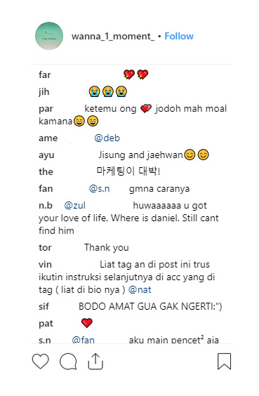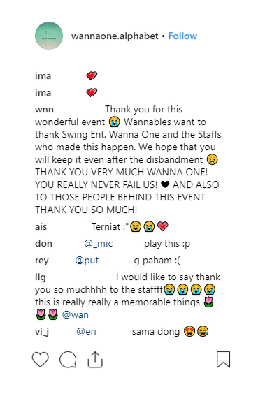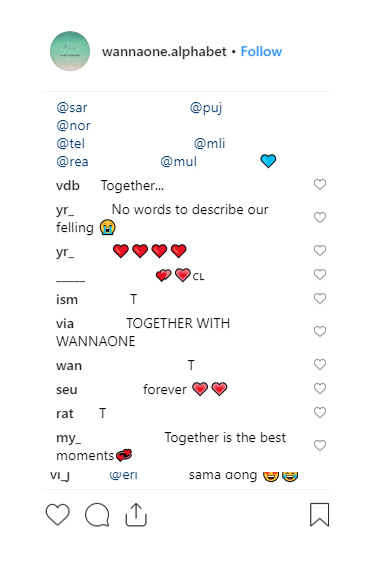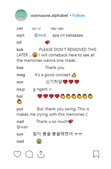 워너원 공식 계정을 중심으로 한 본 프로모션은 참여자들의